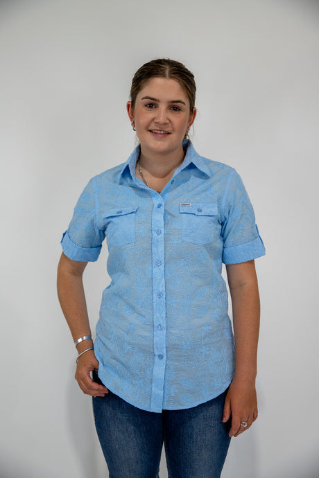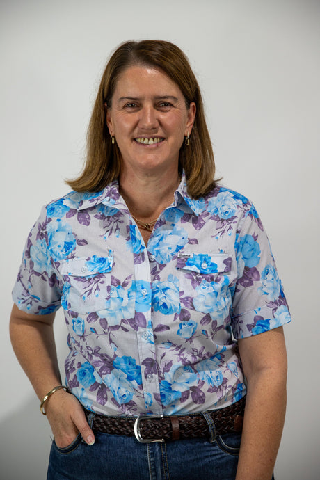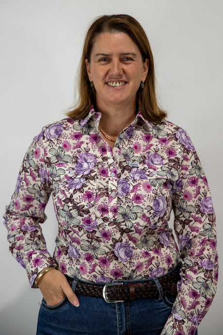 Joanne - 1/2 Button Front floral Long Sleeve Cotton Collared Shirt
