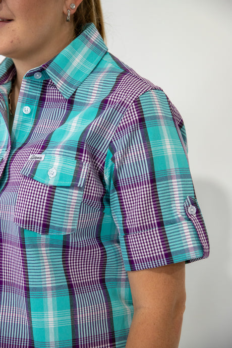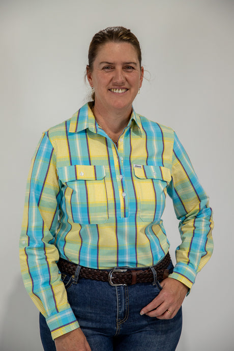 Justine - 1/2 Button Front Long Sleeve Cotton Collared Shirt