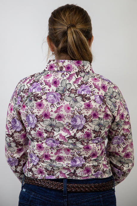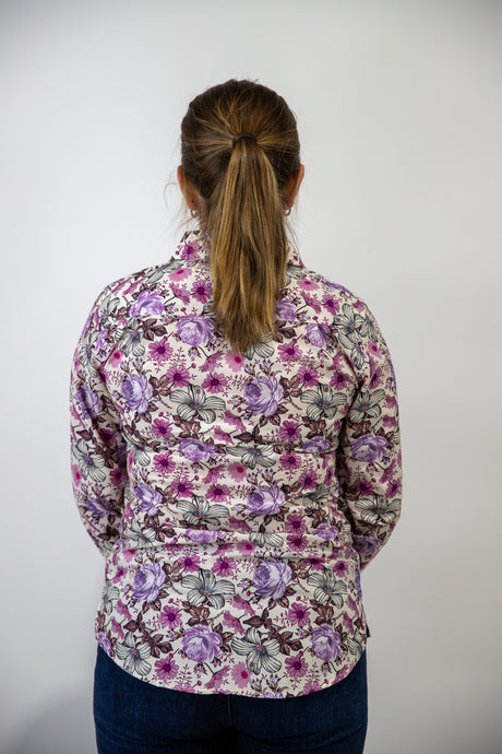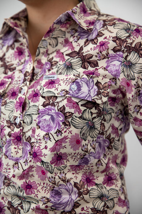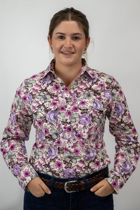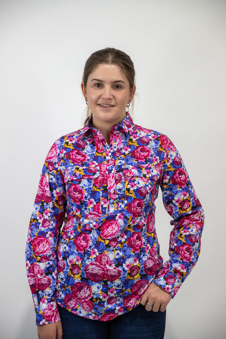 Hillary - 1/2 Button Front floral Long Sleeve Cotton Collared Shirt