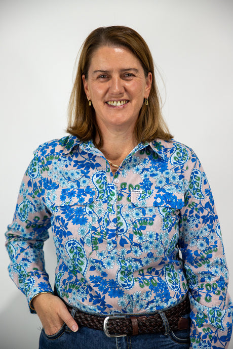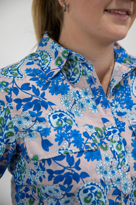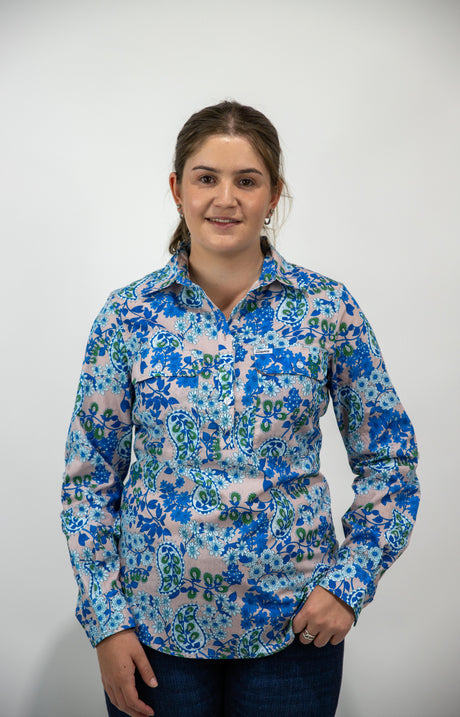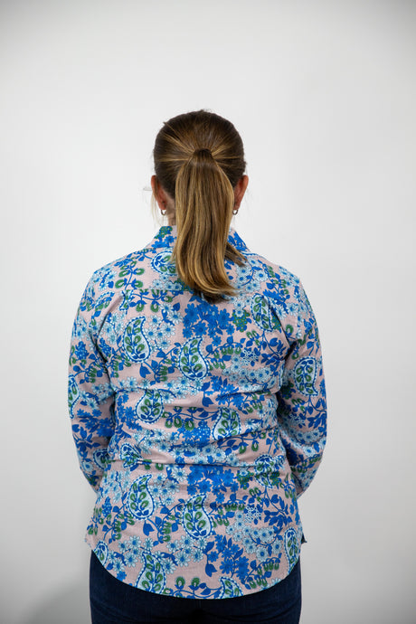 Cora - 1/2 Button Front floral/paisley Long Sleeve Cotton Collared Shirt