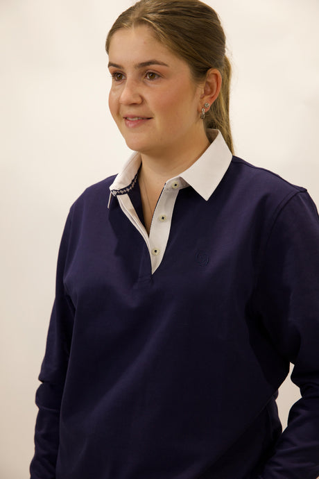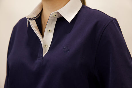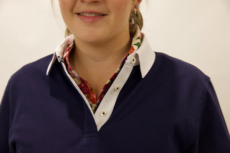 Regular price $6800Unit price /UnavailableNaomi - Navy Ruffle Polo Shirt with striped trim