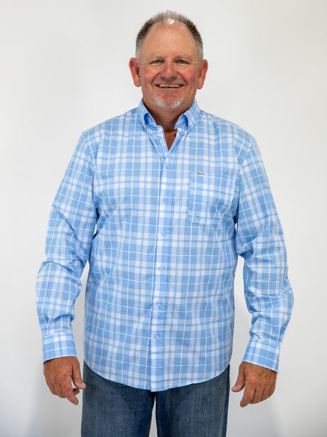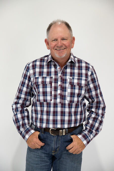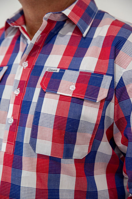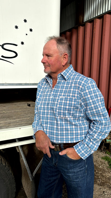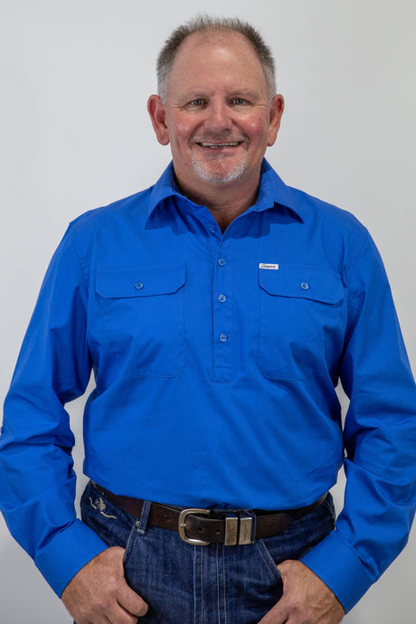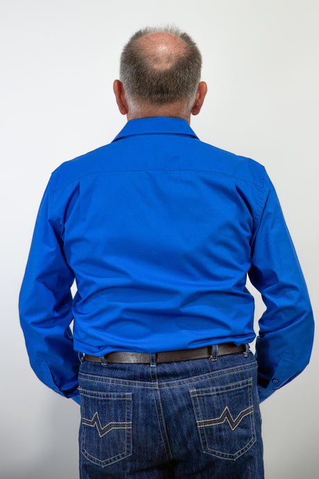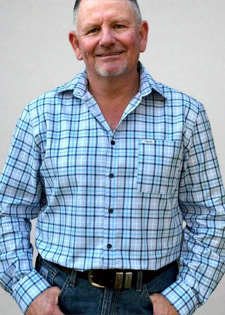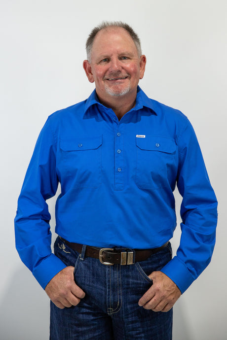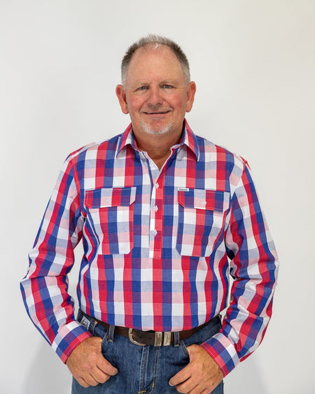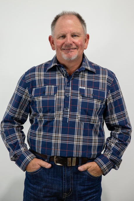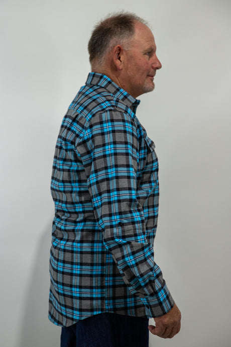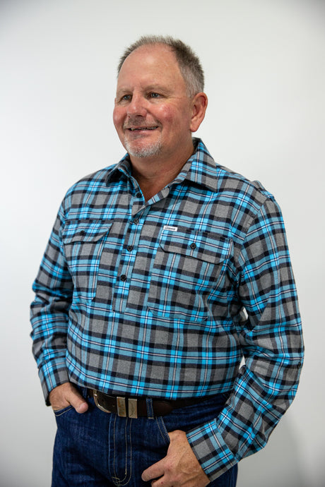 Blue Flannelette - 1/2 Button Front MENS Long Sleeve Shirt