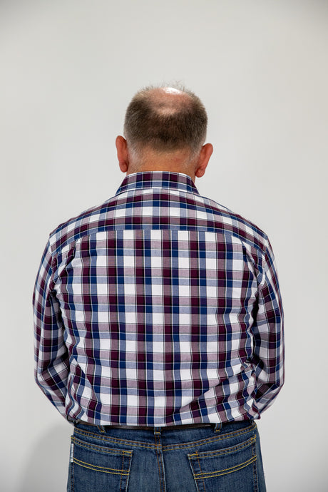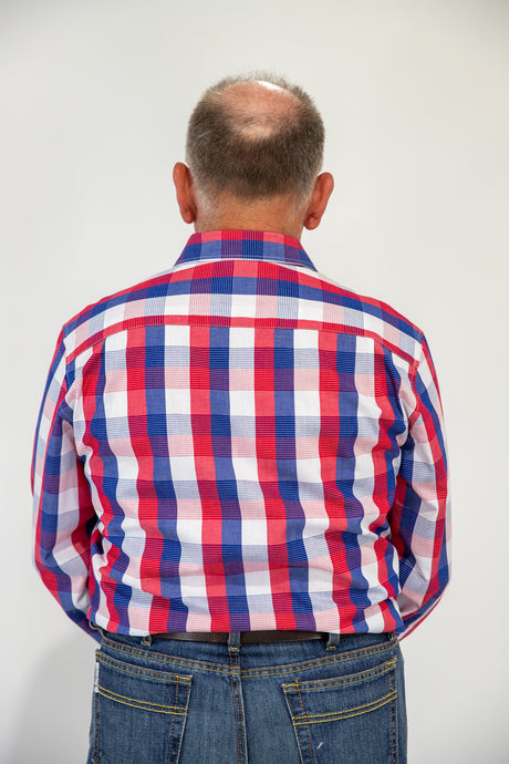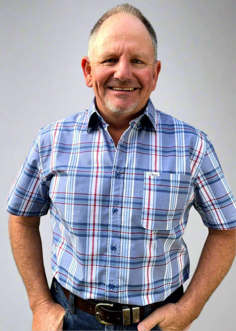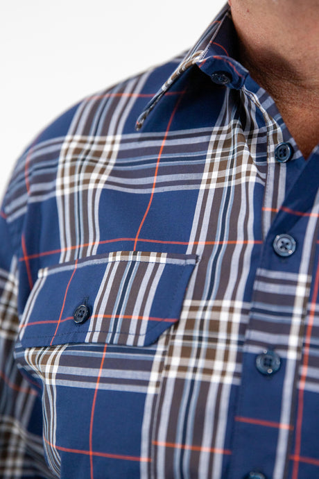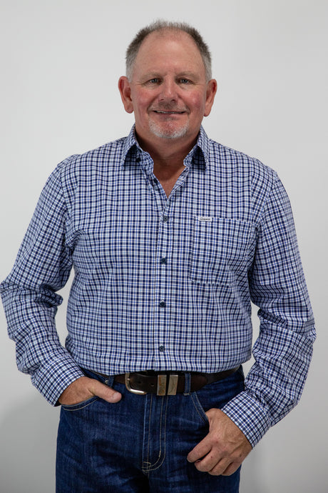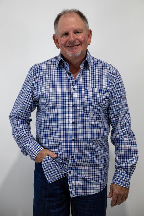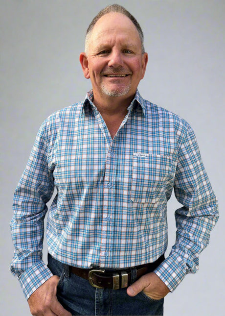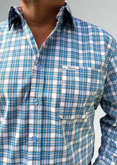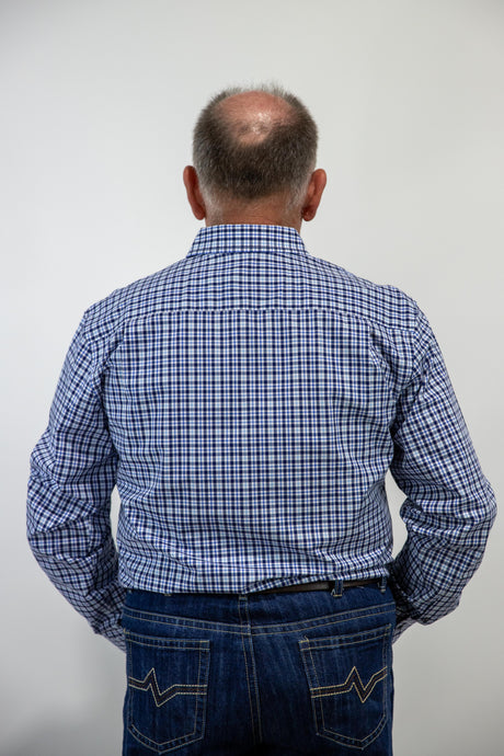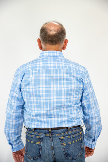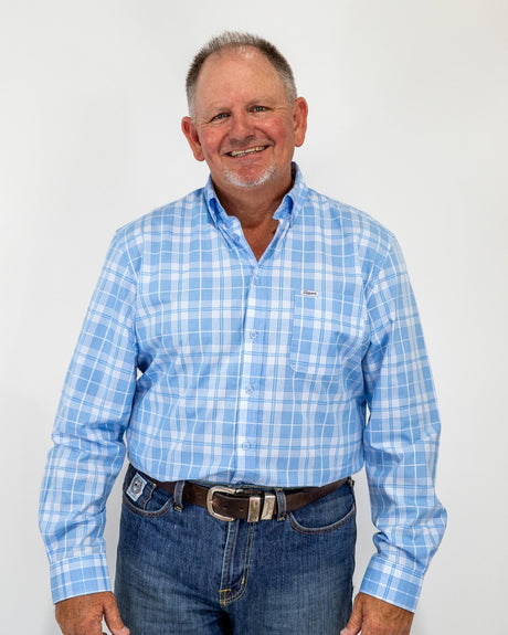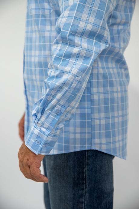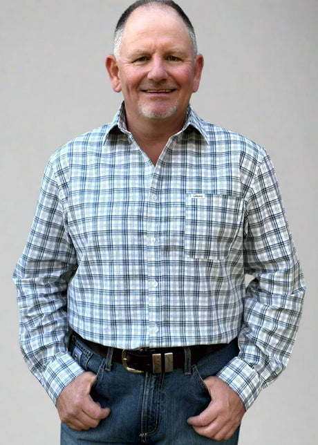 Blue Flannelette - 1/2 Button Front MENS Long Sleeve Shirt