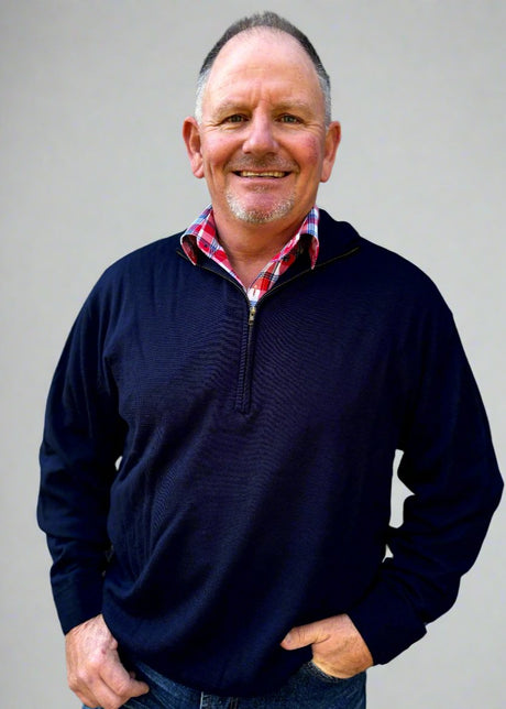 Sale price $5950 Regular price $7000Unit price /Unavailable Mens Navy 100% Merino Wool 1/2 Zip Jumper