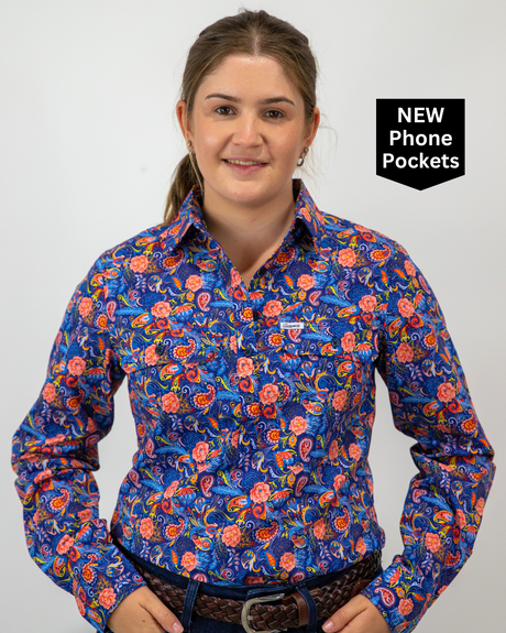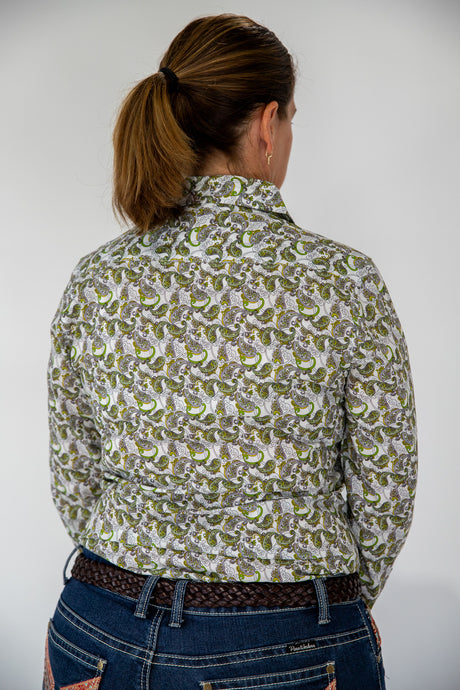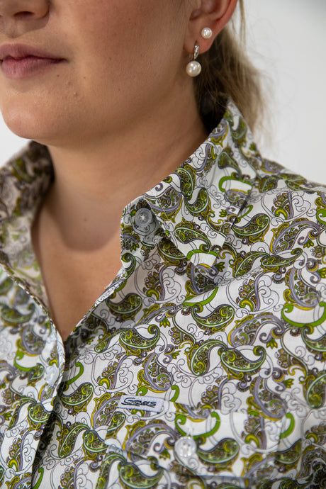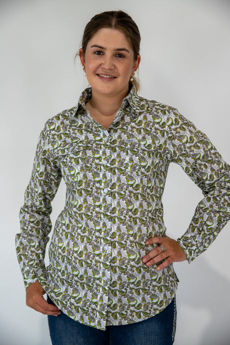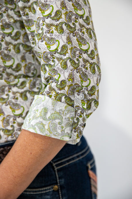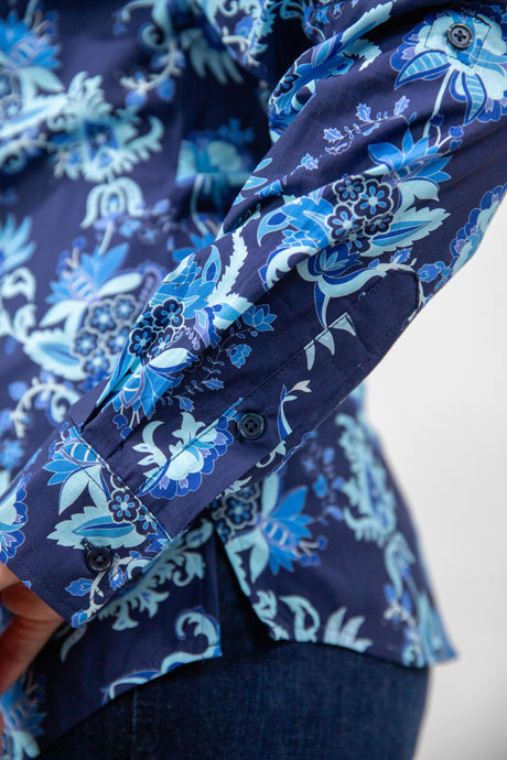 Trudy - 1/2 Button Front floral/paisley Long Sleeve Cotton Collared Shirt