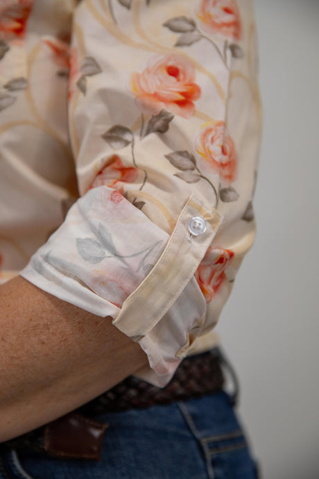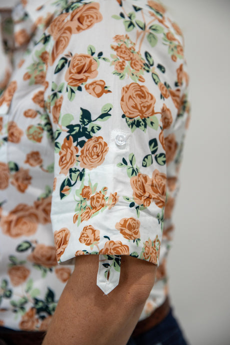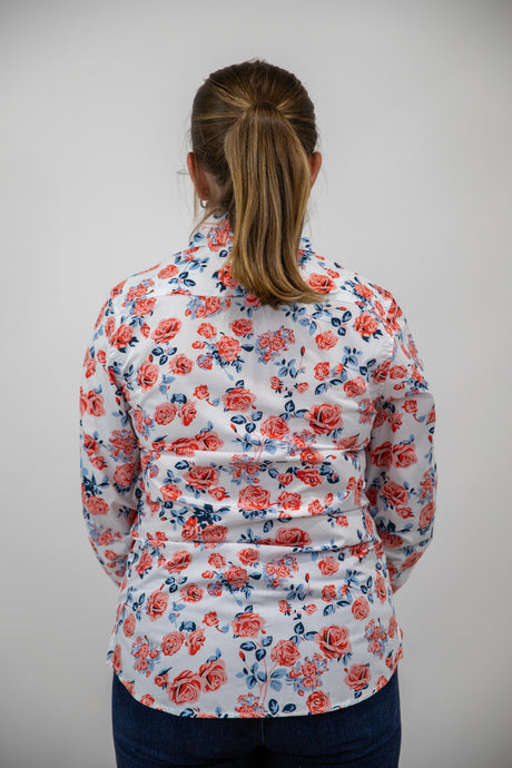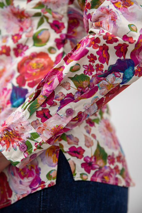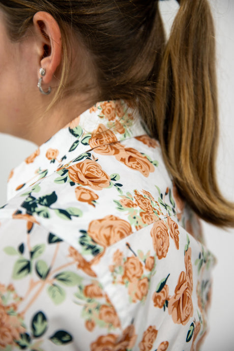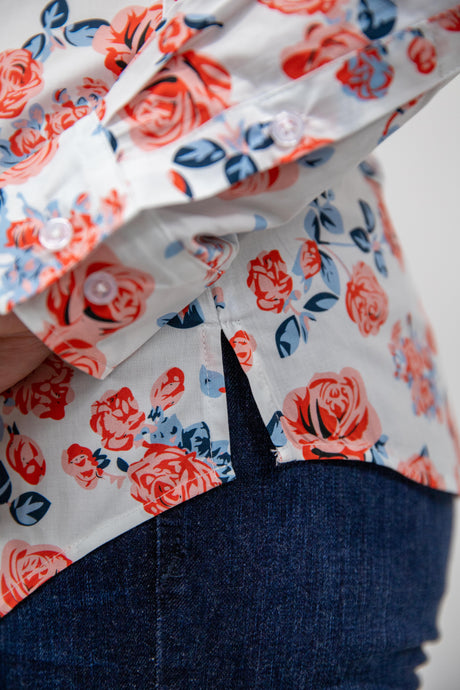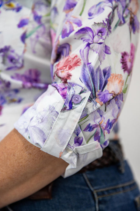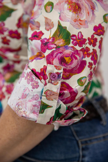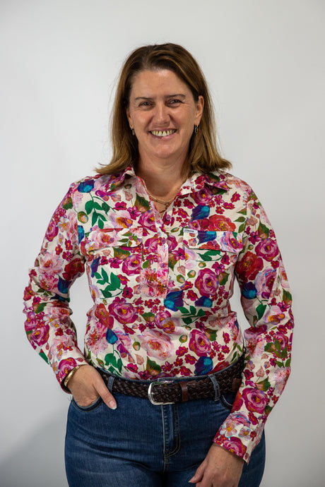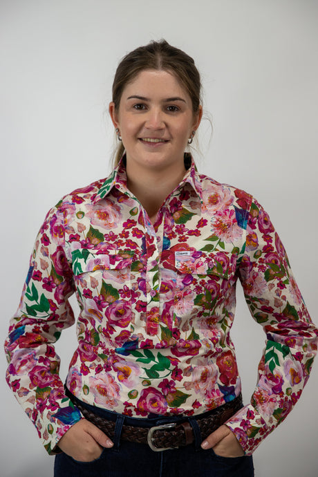Joanne - 1/2 Button Front floral Long Sleeve Cotton Collared Shirt