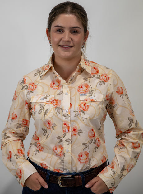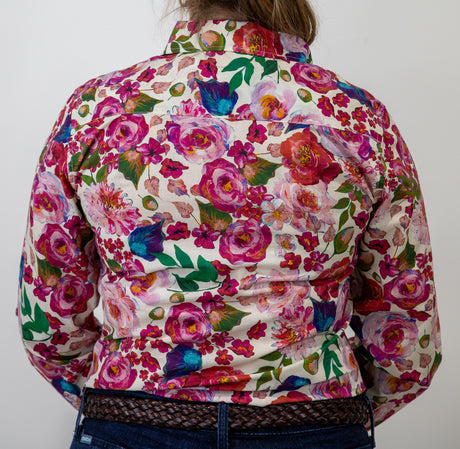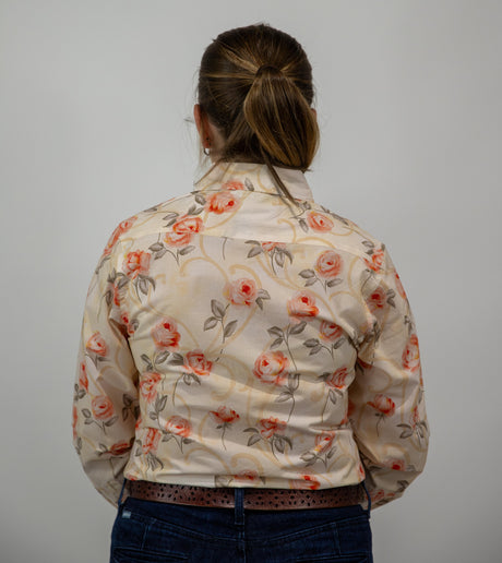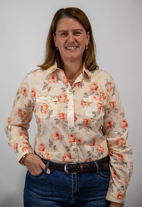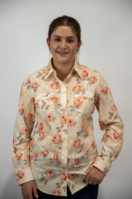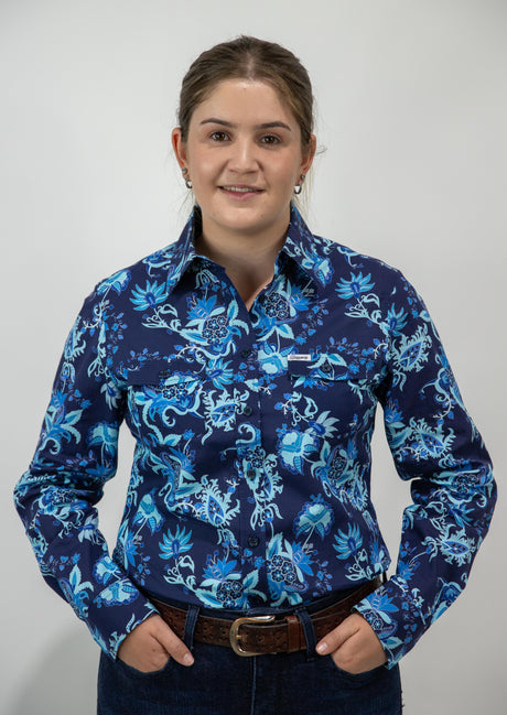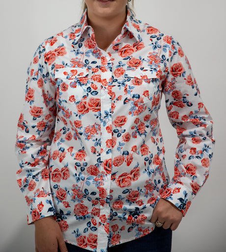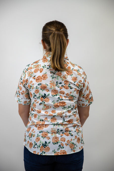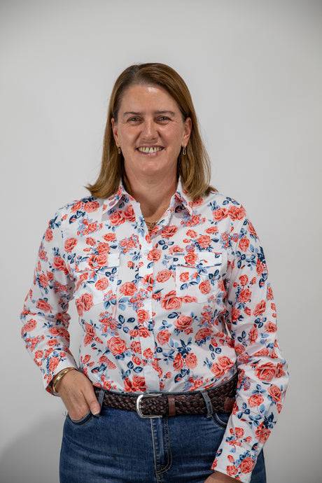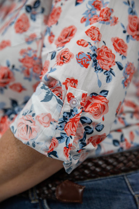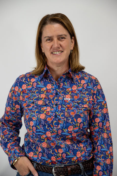 Joanne - 1/2 Button Front floral Long Sleeve Cotton Collared Shirt