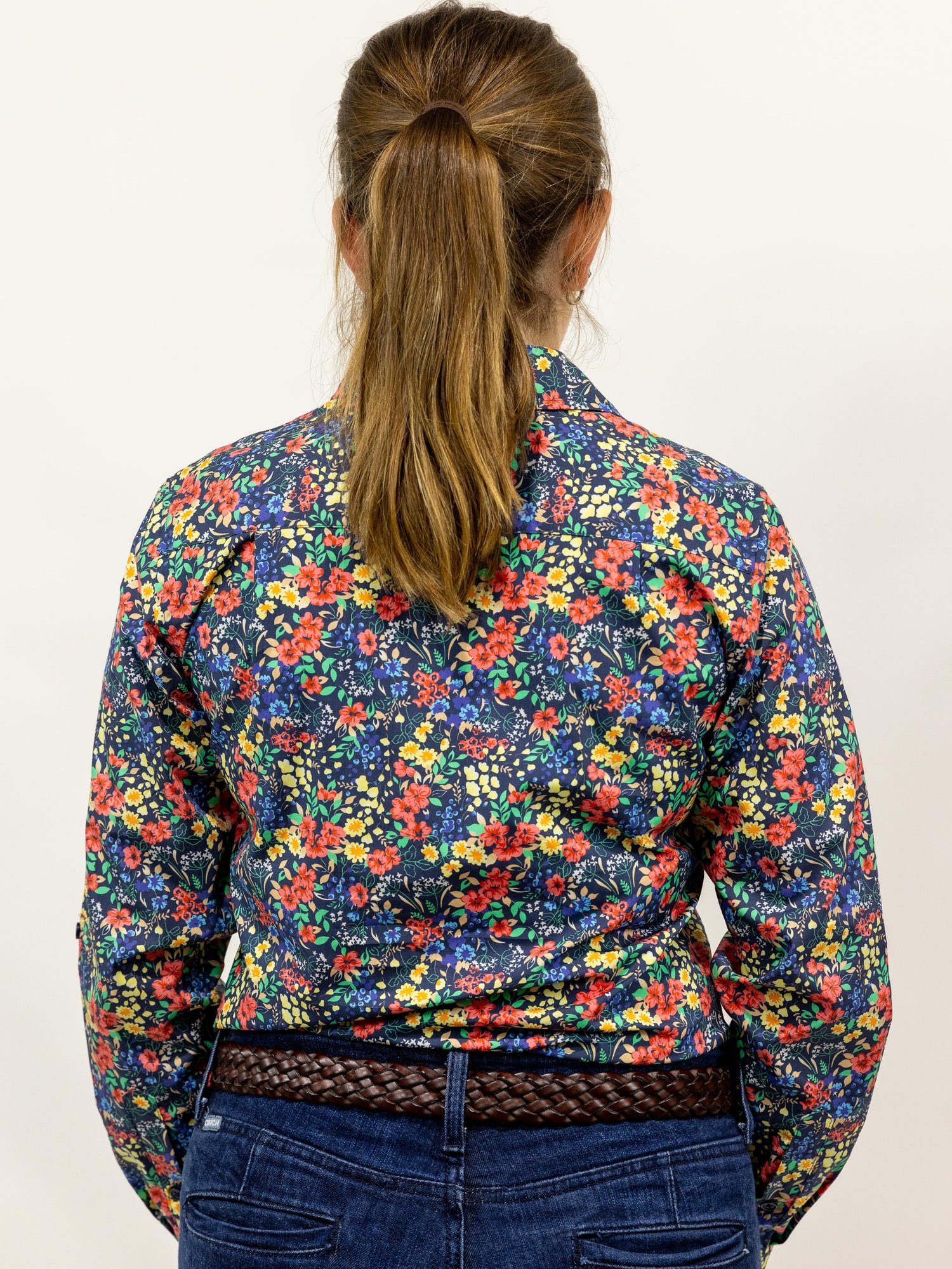 - Long body length for tucking into jeans or cover if worn untucked