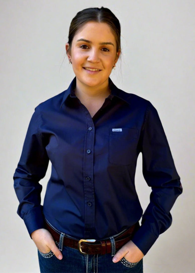Navy - Collared Long Sleeve Cotton Shirt - Ladies 12 is backordered and will ship as soon as it is back in stock.