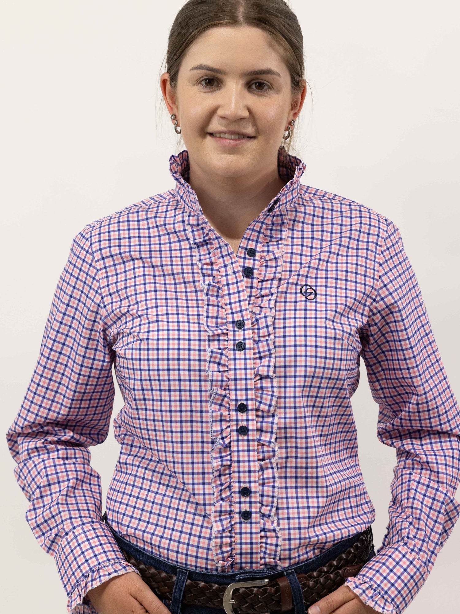 Petrina - Long Sleeve Collared Shirt WITH Ruffles - Ladies 8 is backordered and will ship as soon as it is back in stock.